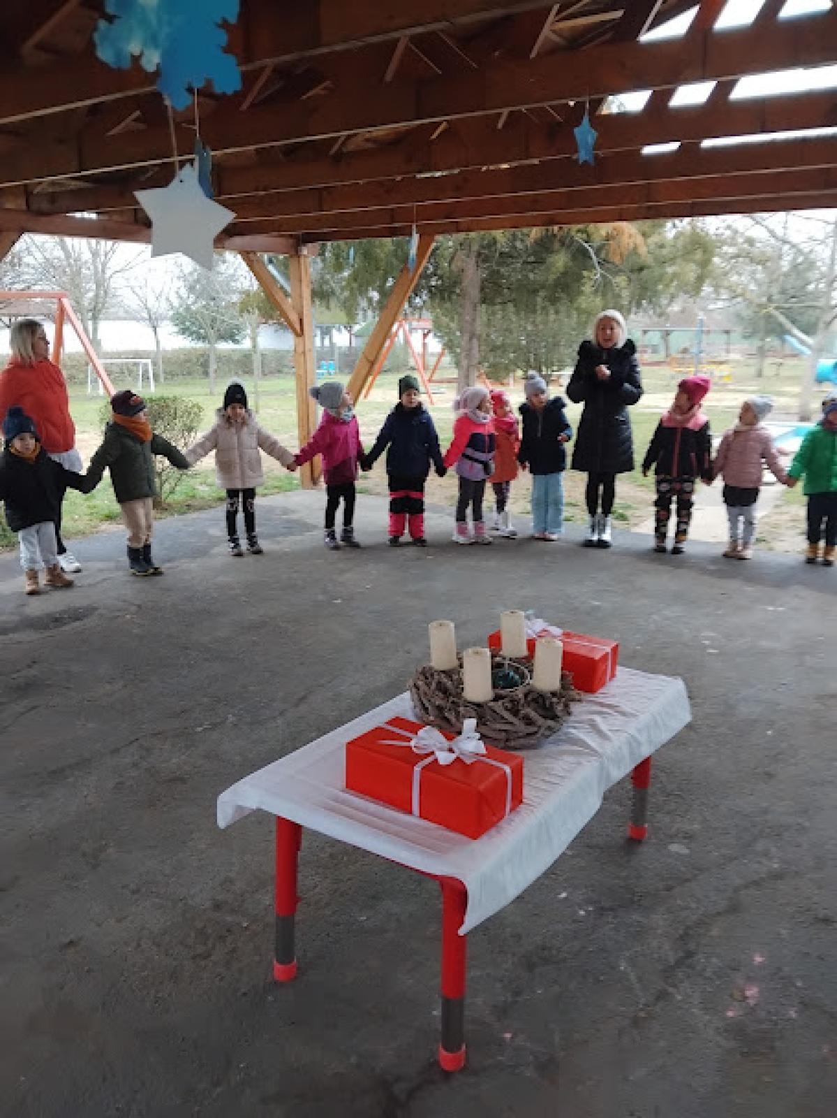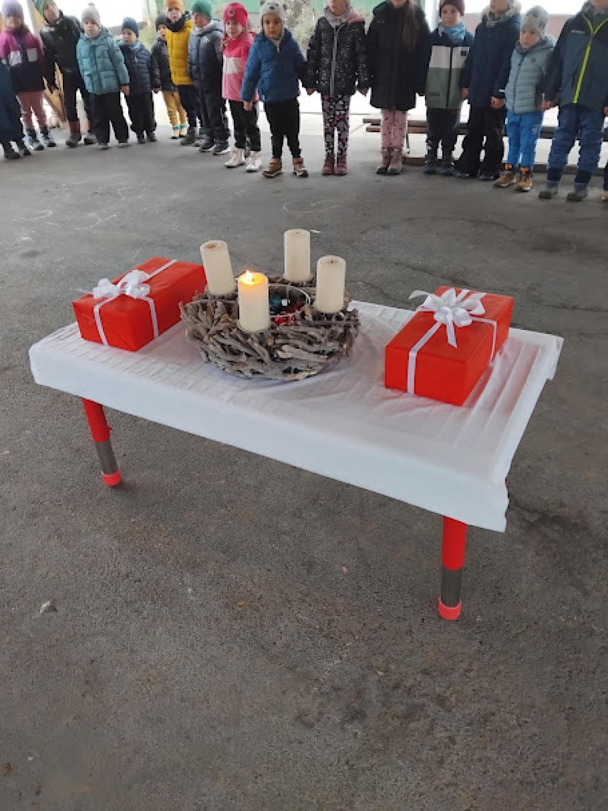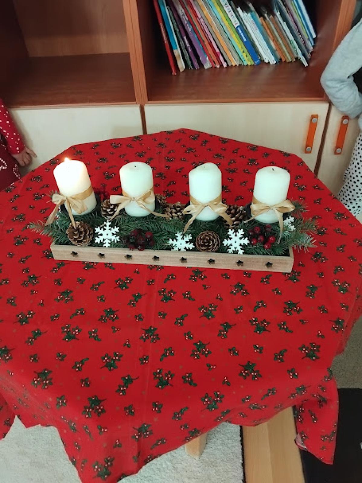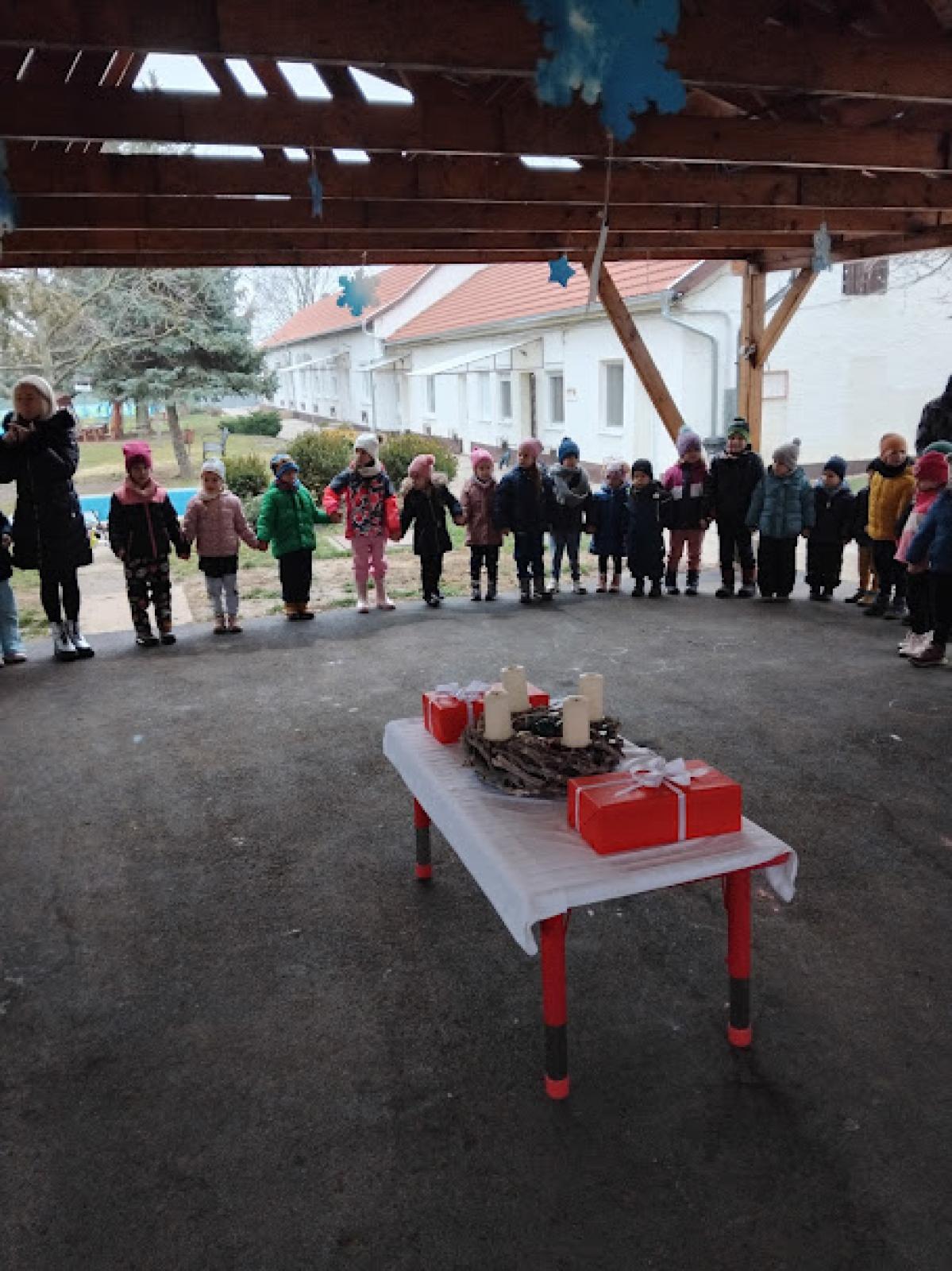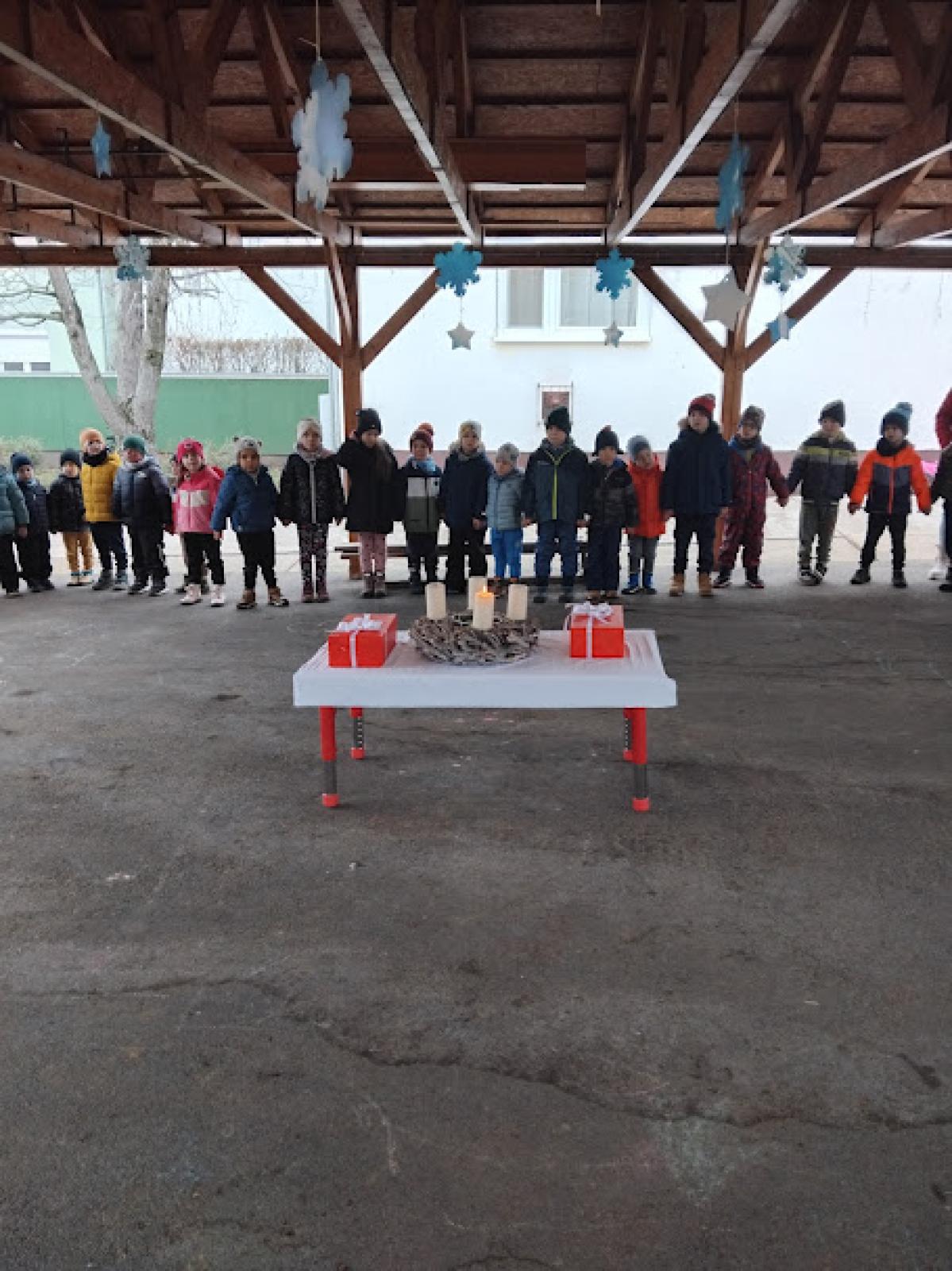 2025. december 1-én meggyújtottuk az adventi koszorú első gyertyáját közösen.