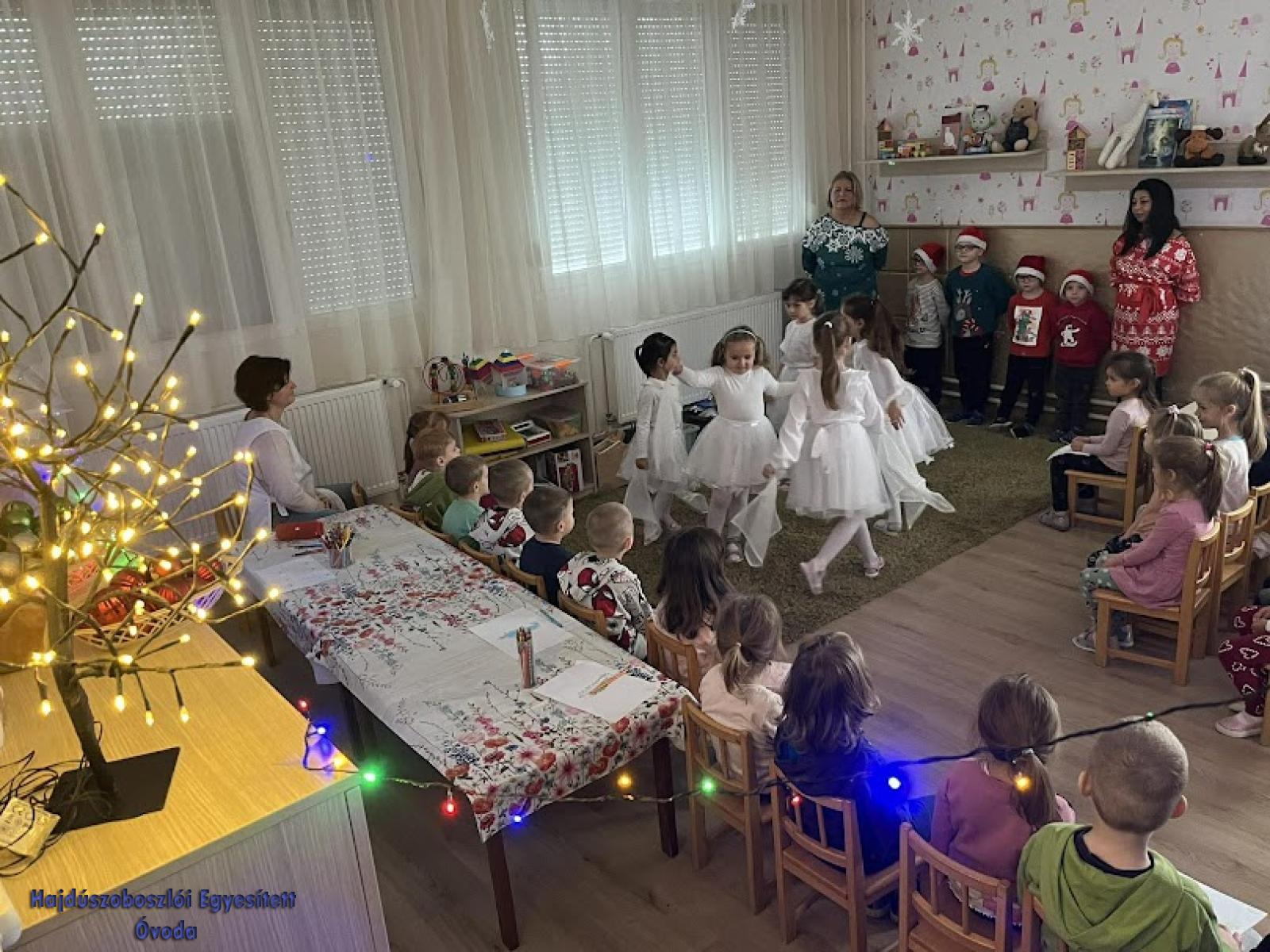 Meghitt, zenés, verses és táncos programmal lepték meg a csoportok átjárásának biztosításával a KARÁCSONYI MANÓK és a HÓPIHE TÁNCOSOK a csoportokat;erősítették a közösséghez tartozást, ünnepi ráhangolódást, az együtt lenni jó érzést, pozitív élményeket , az ünnepi várakozás örömét...
