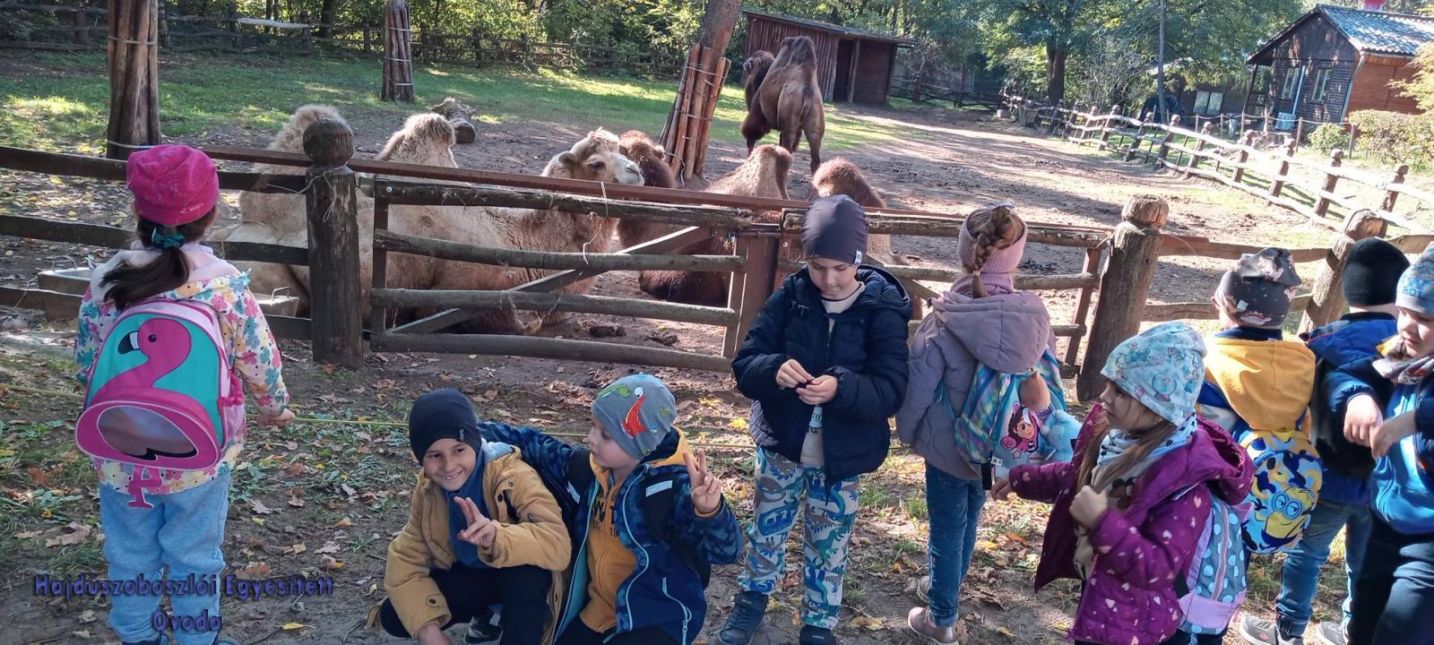 2025.október 16-án reggel elindultunk a Bárdos Iskola parkolójából,63 tanköteles korú gyerekekkel a Debreceni Állatkertbe.Ebben az évben a kiránduló gyerekek magas létszáma miatt a bérelt autóbuszok mellett döntöttünk és nem a tömegközlekedési eszközöket választottuk. Kellemes, napsütéses, igazi őszi kiránduló időben látogathattuk meg az állatkertet. A gyerekek nagyon élvezték a kötetlen sétát, sok olyan állatra rácsodálkozhattak, amelyet eddig soha nem láthattak élőben. Igazi kedvencek azonban a napozó gyűrűs farkú makik, az éppen abrakoló birkák és a zsiráfok voltak. De nagyon szerették a gyerekek a bájos nyuszi falut és az egzotikus madárröpdét, ahol különleges vízesés, kis patak és azon át ívelő hidacska volt, tele különleges madarakkal, melyek körülöttünk sétáltak, repültek. Ám mint minden kiránduláson, most is az egyik legfontosabb volt a gyerekeknek a hátizsákban lévő elemózsia, amit otthonról hoztak, imádtak belőle falatozni, amikor csak lehetőségük nyílt rá, mókus módra rágcsálták a finomságokat,melyek soha nem fogytak ki a zsákokból. Miután körbe kalandoztuk a hely minden zegzugát, még arra is volt energiánk, hogy a közeli Békás Tóhoz elsétáljunk, ahol egy fantasztikus játszóteret vehettek birtokba a gyerekek. Ezt után a lendületes játék után visszasétáltunk az állatkerthez, ahol a buszunkat vártuk. A Nagyerdei Stadion futópályája csábító volt azoknak a gyerekeknek, akikben még mindig volt lendület, az ő kedvükért egy rögtönzött futóversennyel zártuk a kirándulást. Élményekkel, emlékekkel, nevetéssel megpakolva kicsi lelkük hátizsákját térhettek vissza kedves családjuk szerető karjaiba, akik már otthon a parkolóba vártak minket.
