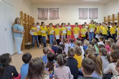 Meglepetésként ajándékba meséskönyv csomagot vettünk át; a könyveket óvodánk 6 csoportjában szétosztottunk. Nagyon köszönjük a lehetőséget; öröm volt látni az iskolás osztály sorai között régi aranykapu óvodásainkat.
