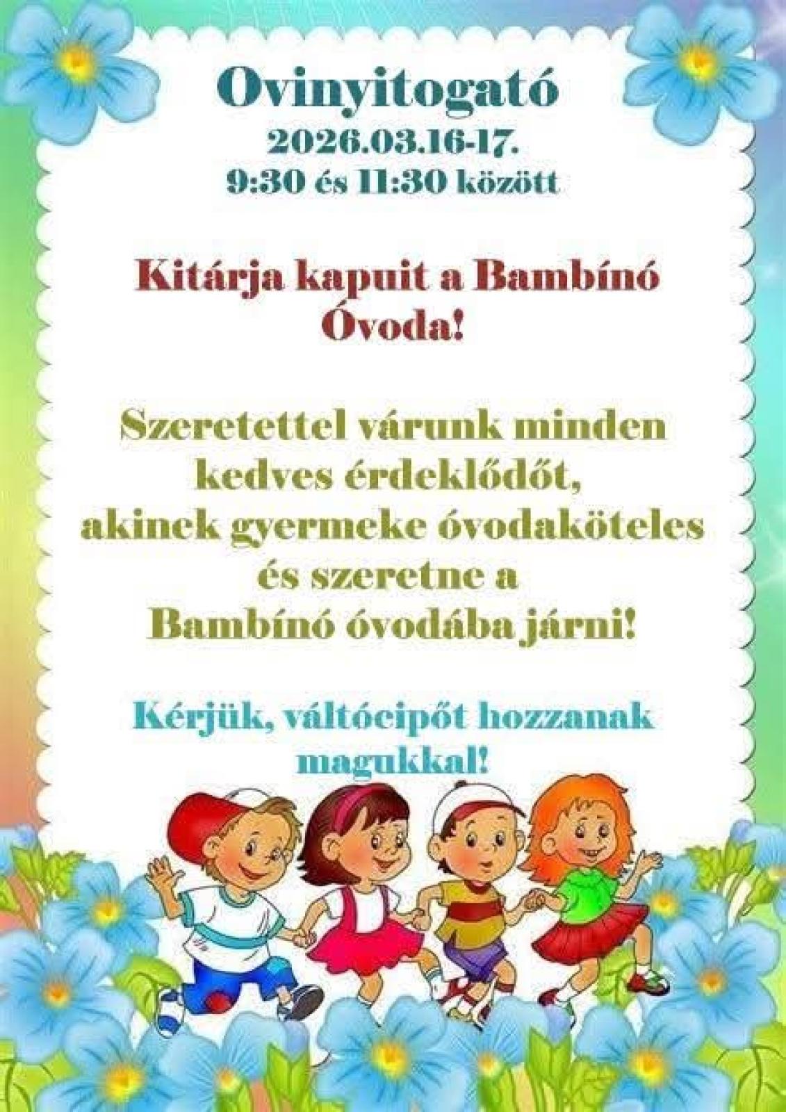Szeretettel várjuk a leendő kis ovisokat és szüleiket 2026 március 16-án,17-én 9:30 és 11:30 között. Betekinthetnek óvodánk életébe és megismerkedhetnek az óvodapedagógusokkal.